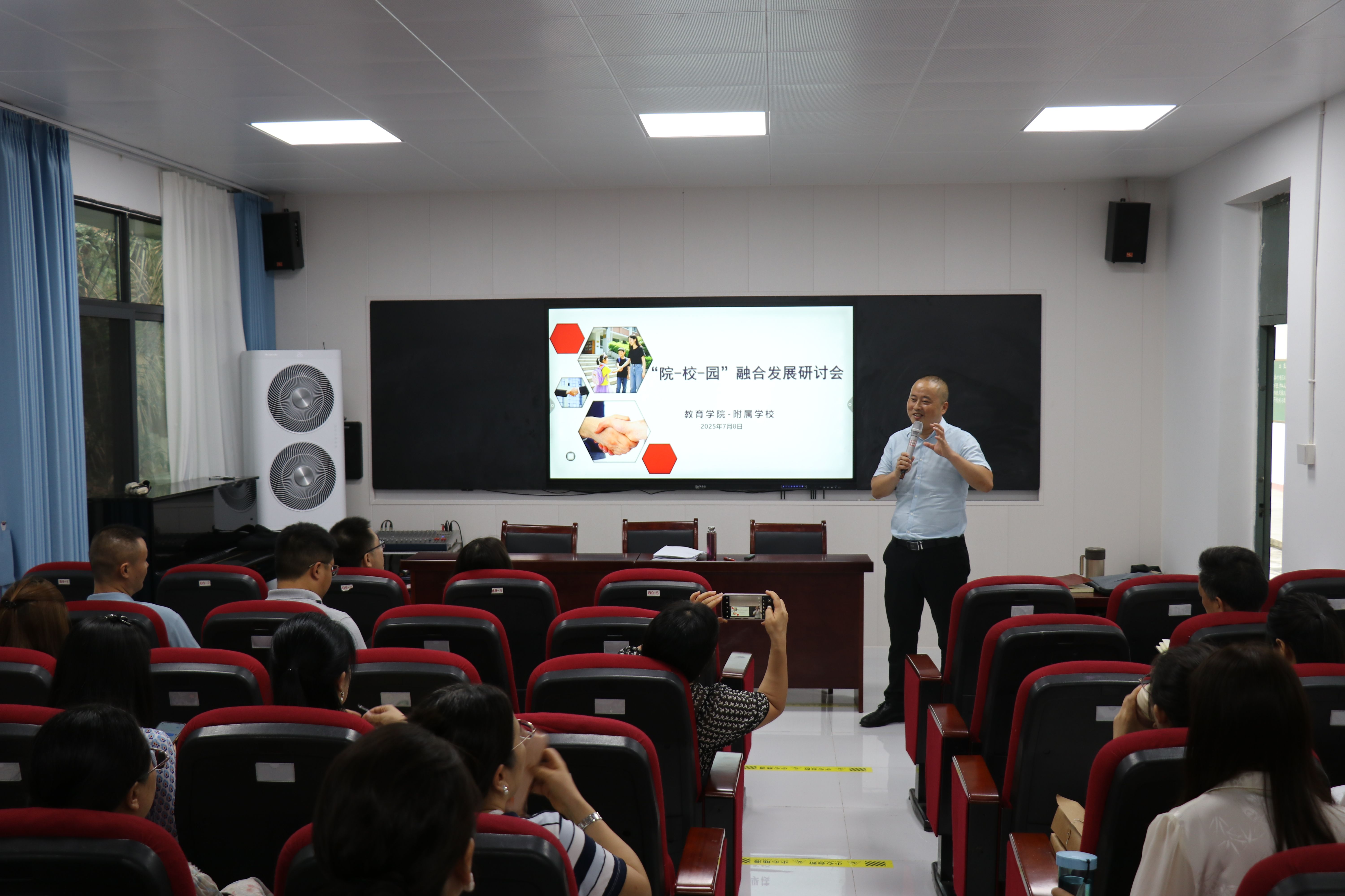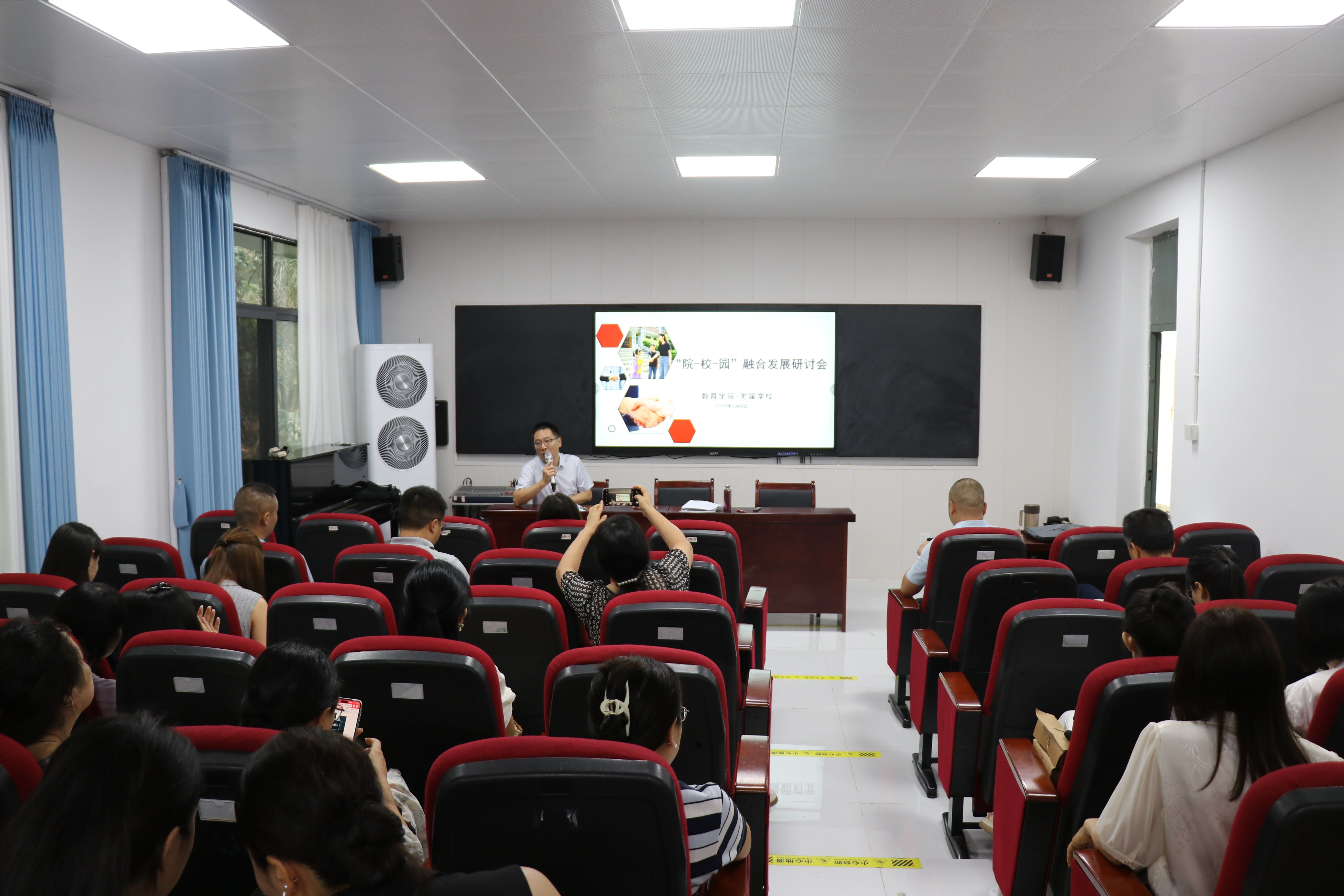 7月8日下午royal皇家88平台举行“‘院-校-园’融合发展”专题研讨会。此次会议聚焦我校附属幼儿园、附属学校royal皇家88平台的深度融合发展路径,旨在打破学段壁垒,实现资源共享与优势互补。学院党政领导班子及全体教师参会。