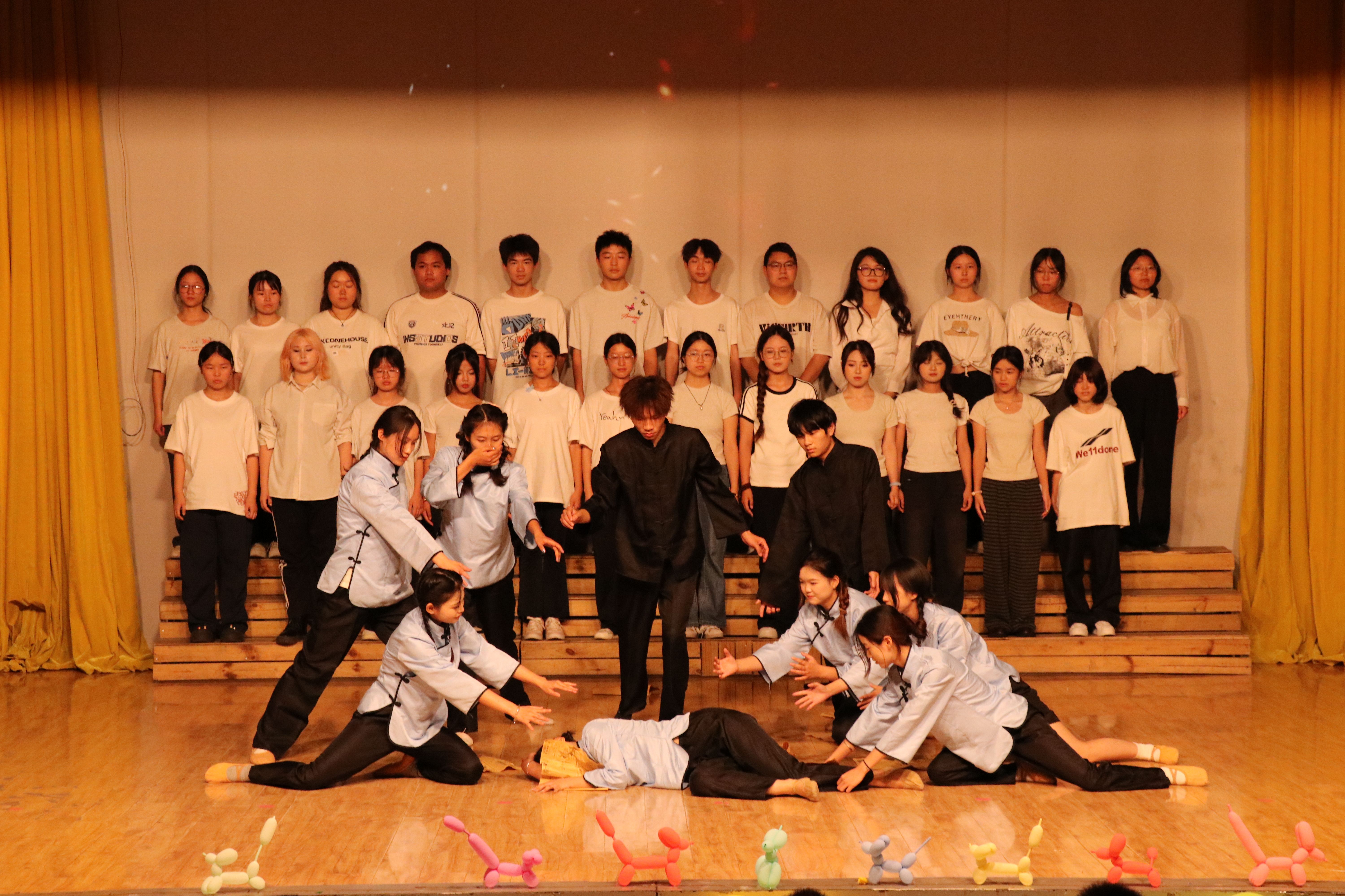 晚会分为“逐梦启航”和“步履生花”两大篇章。开场舞《Love Language》活力四射,瞬间点燃现场氛围;米雪霞老师深情献唱《传奇》,诠释浓浓师生情;情景剧《再见老师》以幽默温馨的方式重现校园点滴;古典舞《珠玉》尽显传统之美;集体舞《五四薪火·青春园舞》则展现青年担当。中场师生趣味互动,将晚会推向高潮。
