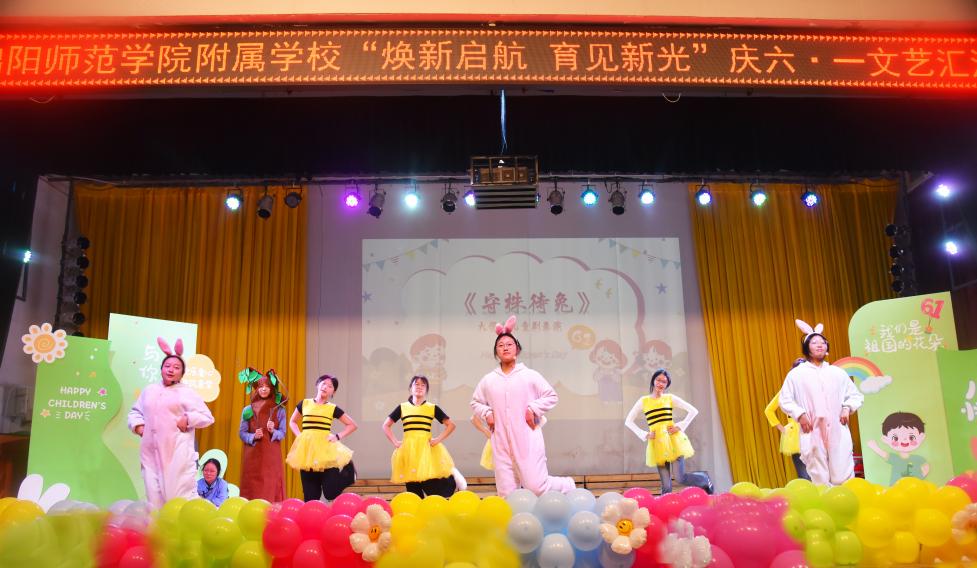 庆祝活动中,学校关工委特邀退休教师王家松教授现场创作书法作品“希望之花”,为孩子们送上祝福,将传统文化的魅力融入节日氛围中。文艺汇演环节,开场舞《少年有志》展现新时代少年朝气蓬勃的精神风貌;校武术队带来的《少年功夫秀》刚劲有力,彰显国粹魅力;royal皇家88平台大学生表演的儿童剧《猫鼠之夜》《守株待兔》寓教于乐,深受欢迎;舞蹈《寄明月》《上春山》,舞台剧《糖葫芦里的春天》,诗朗诵《月光下的中国》等节目亮点频出;合唱《雁群飞》《每当我走过老师窗前》《妈妈宝贝》以纯净童声传递真挚情感。