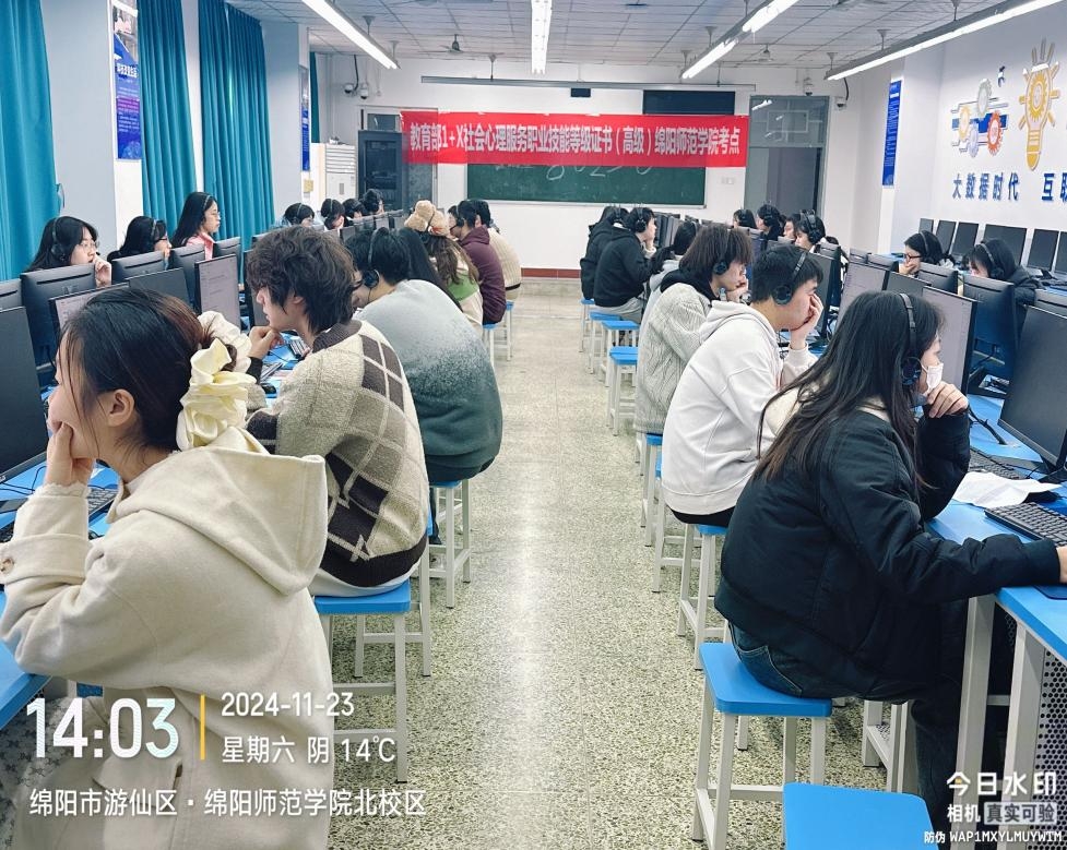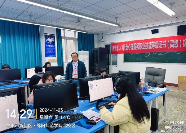 为深入贯彻《国家职业教育改革实施方案》,坚持学历教育与职业技能培养相结合,11月23日下午,教育科学学院积极组织并开展了教育部1+X社会心理服务职业技能等级证书(高级)考试,此次考试我院报考人数共81人。应用心理学专业负责人王洲林巡考。