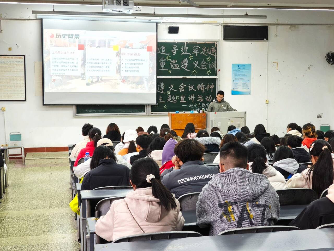 为引导青年学生弘扬遵义会议精神,赓续红色血脉,传承红色基因,教育科学学院“逐光”志愿实践团于11月24日下午举办了“追寻红军足迹,重温遵义会议历史”主题宣讲活动,现场共150余名学生参加。