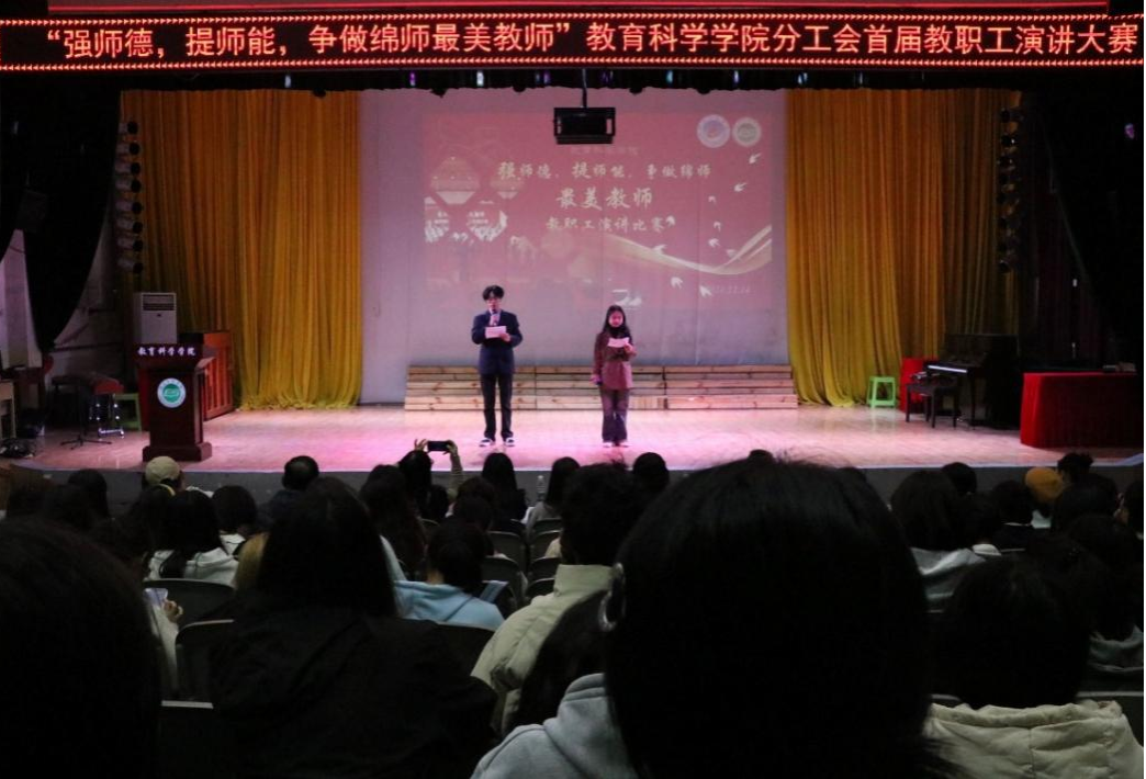 2024年11月14日下午,教育科学学院分工会在演奏厅举办“强师德,提师能,争做绵师最美教师”教职工演讲比赛。本次活动共有7位青年教师积极参赛,邀请到学院的众多资深教师作为评委出席,吸引了200余名同学前来观赛。