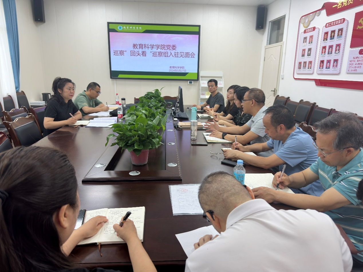 根据学校党委巡察工作安排部署,党委第五巡察组于近期对教育科学学院党委开展为期一周的巡察整改落实情况“回头看”。5月29日上午,教科院党委召巡察“回头看”工作见面会,学院党政班子成员、党委委员、党支部书记、三办负责人和巡察组两位同志参加会议。
