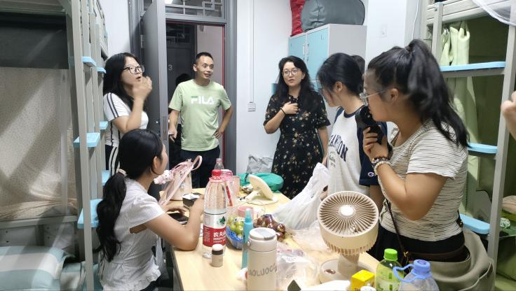 迎新当晚,学院党政领导班子带领辅导员和主要团学干部走进宿舍,走访慰问2025级新生。