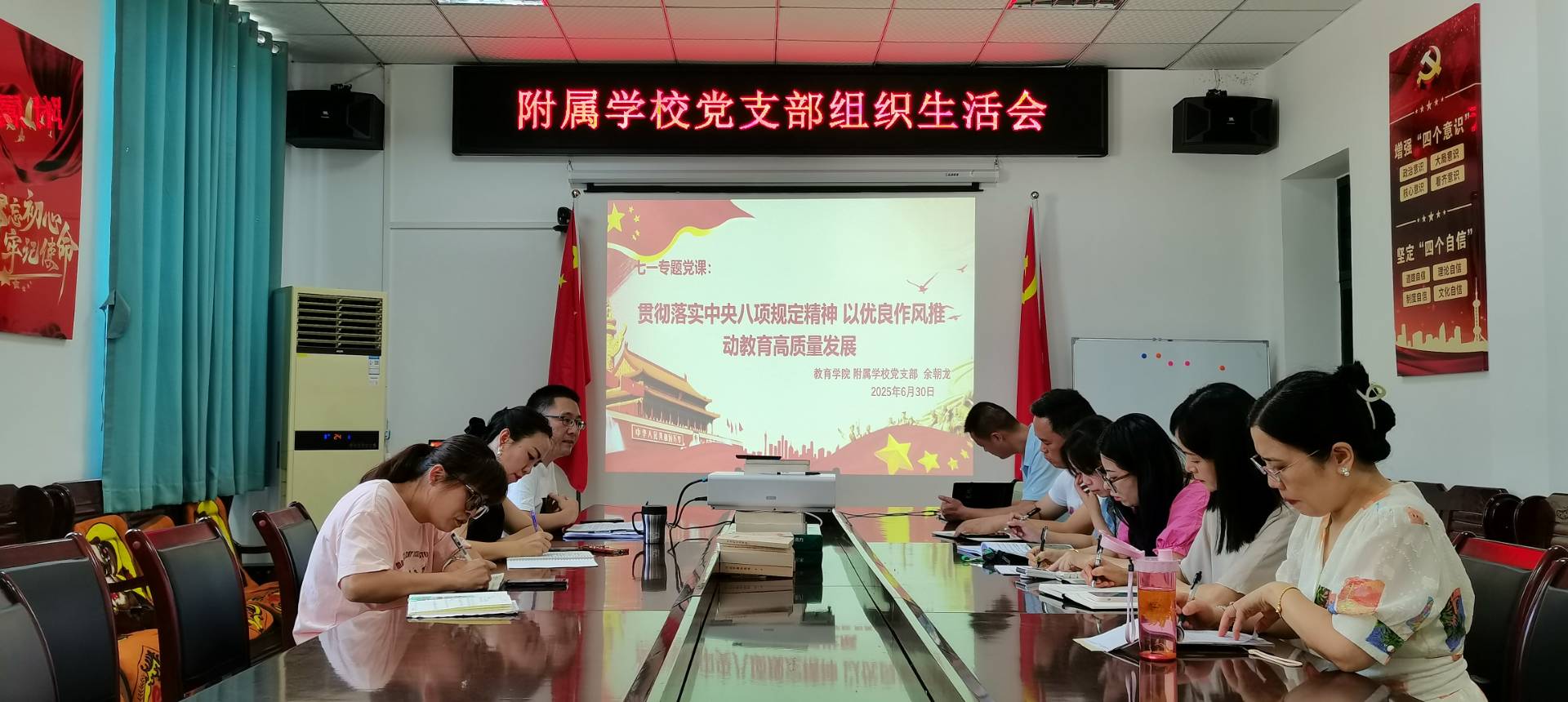 七一前夕,royal皇家88平台党委组织开展“庆七一·强作风”专题党课活动。学院党委书记王正惠带头讲授,全体党员领导干部和各党支部书记深入所在党支部授课,扎实推进中央八项规定精神学习教育。