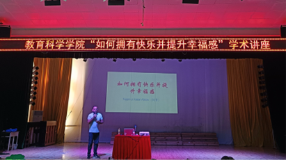 5月23日,阿里博士关于《如何拥有快乐和幸福感》的讲座在本校教科院演奏厅举行,我院各年级学生积极参与。本次讲座是绵阳市教育科学规划“校地共建专项”课题(071)科研项目/(MJGJ2021-B10)“高中生主观幸福感和在校机能的性别差异:心理适应的调节作用”的重要内容之一,旨在引导学生更好地调整心态、培养良好的情绪、保持健康积极的心理状态,从而提高自己的生活和工作质量,增强自我价值感和自我认同感。