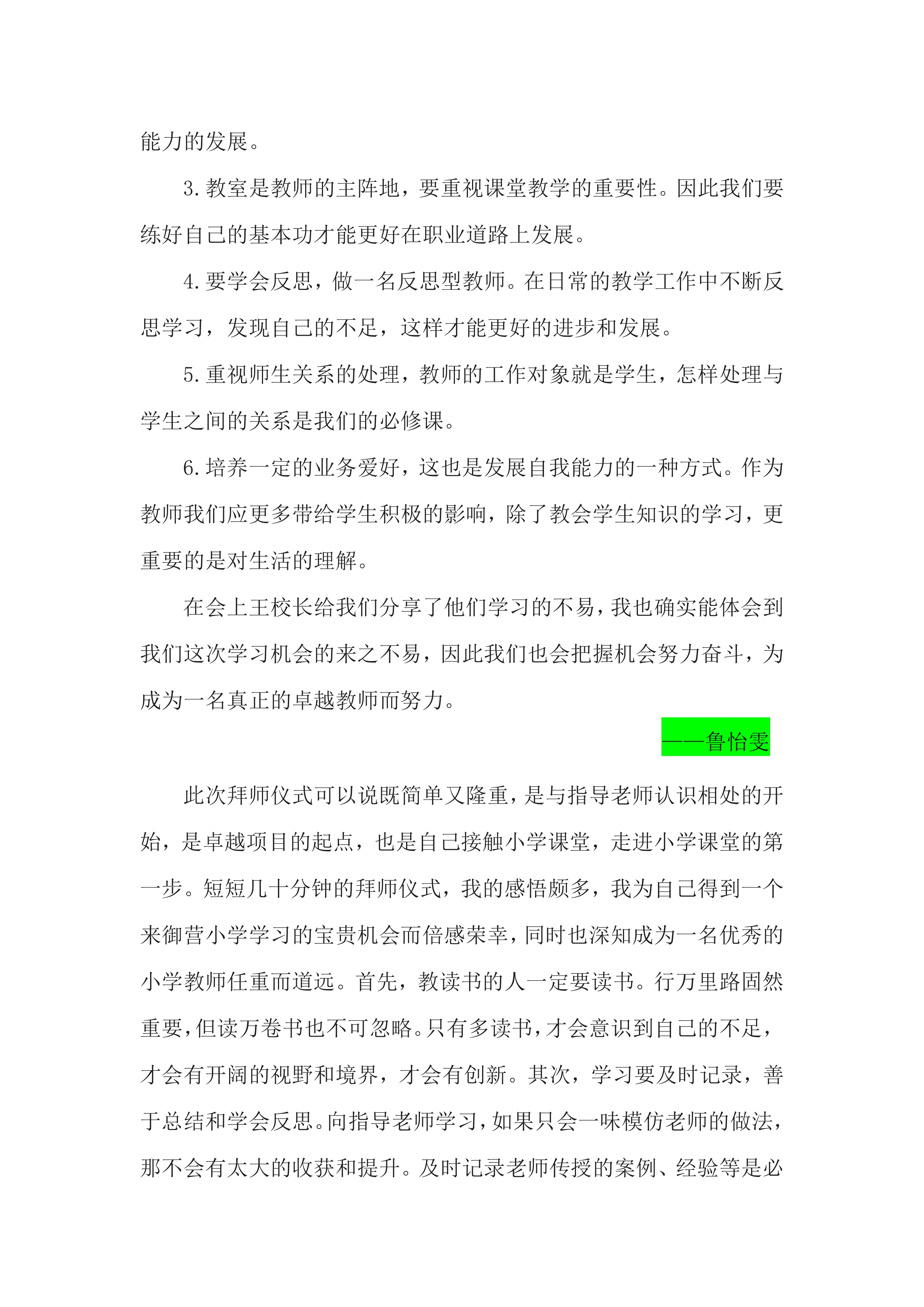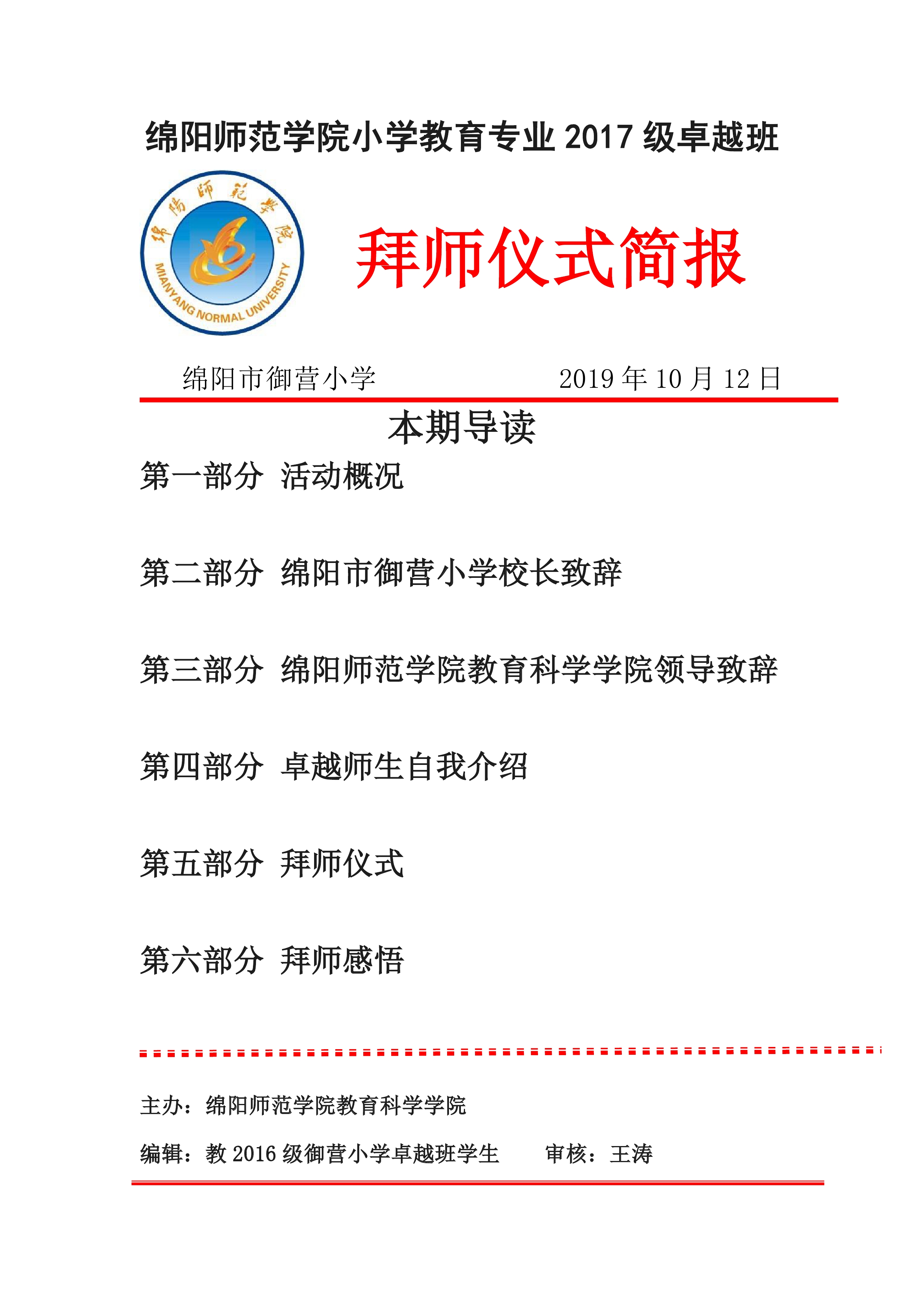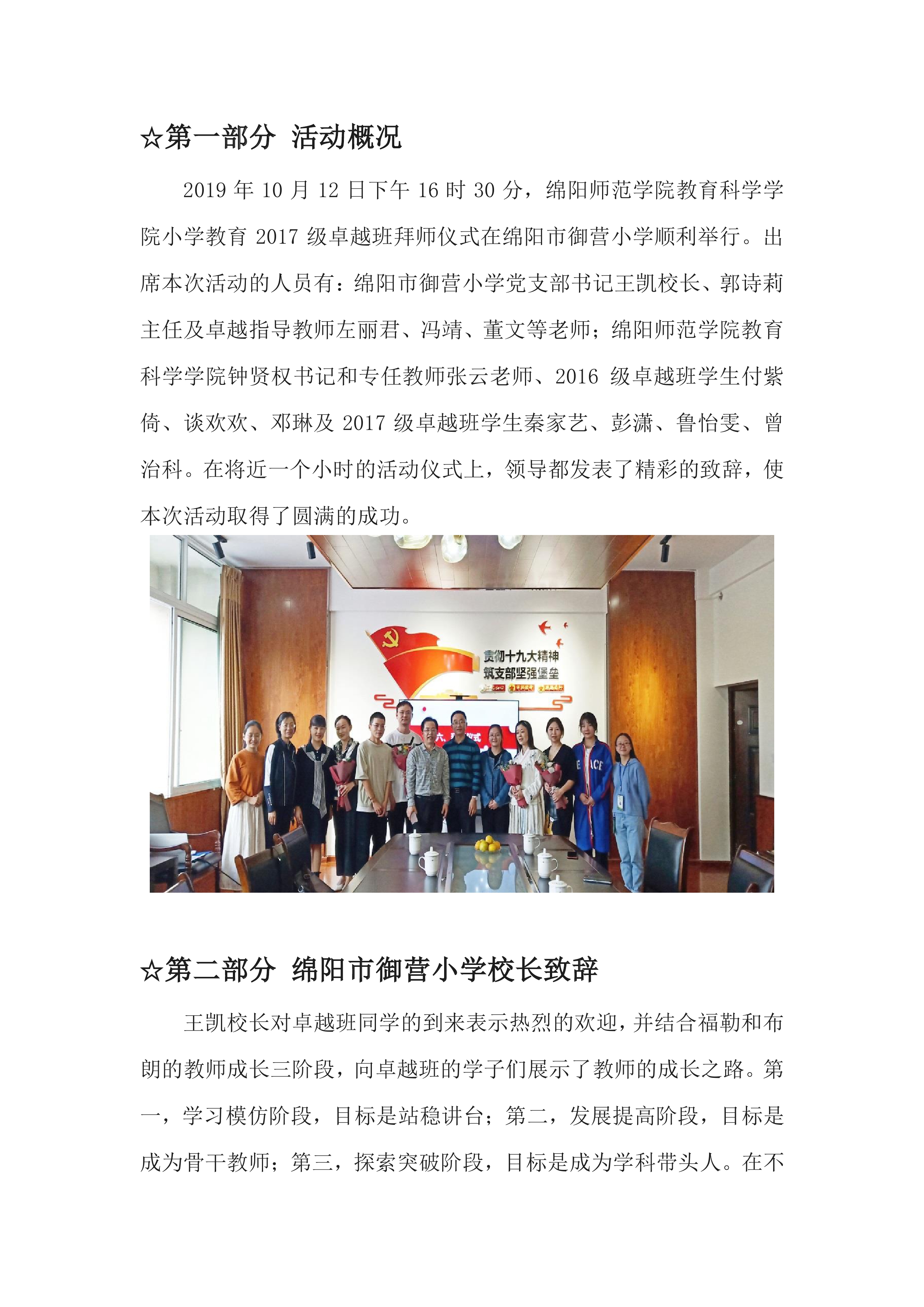 绵阳师范学院小学教育专业2017级卓越班在御营小学举行拜师仪式简报