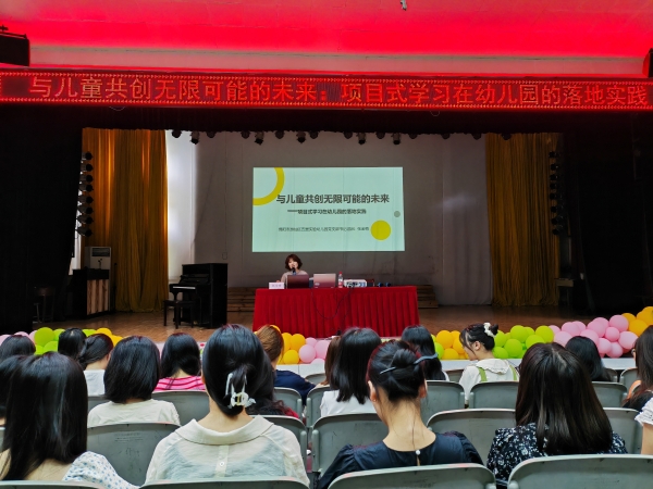 为进一步巩固教育实习效果,提升学前教育专业师范生保教能力和教育情怀,6月14日上午,特邀享有四川省卓越园长称号的绵阳市五里实验幼儿园园长张金梅莅临游仙校区,以专题《与儿童共创无限可能的未来——项目式学习在幼儿园的落地实践》拉开学前教育专业教育研习系列讲座帷幕。本次讲座由学前教育专业实践负责人肖琼华主持,学前教育专业全体实习生和学前教研室教师代表参加。